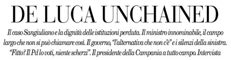Tuttavia le opposizioni rincorrono il governo nei guai e finiscono per superarlo perché i loro guai, appunto, sono l’antidoto migliore ai malanni del governo. Non a caso si sono appena levate contro la crisi delle opposizioni due voci che nel Pd non potrebbero essere più lontane per temperamento e contenuti: quelle di Romano Prodi in un “colloquio” con Fabio Martini, della Stampa, e del governatore della Campania Vincenzo De Luca in una intervista al direttore del Foglio Claudio Cerasa, ammirato della melodia scatenata del suo interlocutore, facendone il titolo in inglese: unchained.