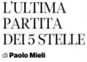 Tregua dunque in Libano. Forse a anche a Milano, nella periferia di Corvetto messa a fuoco come se fosse una banlieu parigina. Ma non sotto le 5 Stelle, con le maiuscole anagrafiche dell’omonimo movimento politico, contese tra il fondatore superstite Beppe Grillo e il presidente Giuseppe Conte, deciso ad esserlo anche di fatto e non solo di nome.