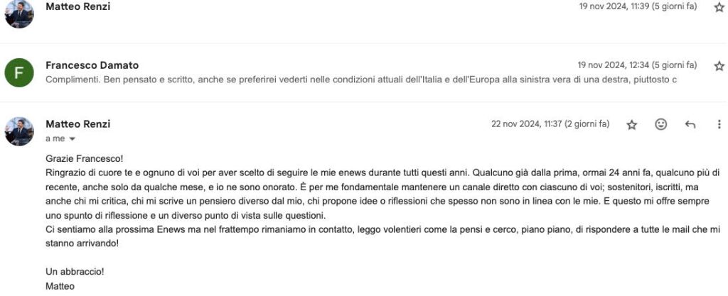La corrispondenza con Renzi