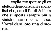 In particolare, gli ho chiesto se non gli convenga fare la sinistra vera della destra, come viene oggi liquidata quella al governo a partecipazione composita, piuttosto che la destra di una sinistra che io ritengo “sedicente” per le posizioni che ha in diversi campi, a cominciare da quello giudiziario.