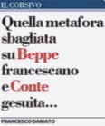 In particolare, Grillo ha riesumato nella sua polemica con Giuseppe Conte e seguaci la figura negativa del gesuita contrapponendola a quella positiva del francescano: tanto astuto, attaccato al potere, falso il primo quanto generoso e aperto l’altro, sino a sconfinare nella ingenuità.