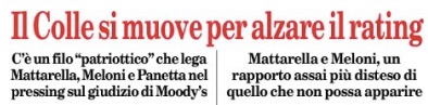 In ritardo insolito, ma lieve, rispetto all’abituale immediatezza dello sdegno per notizie vissute quanto meno come scomode, se non tragiche, Marco Travaglio ha reagito a suo modo sul Fatto Quotidiano di oggi all’assist ottenuto dalla premier Giorgia Meloni con la rivendicazione, da parte del presidente della Repubblica Sergio Mattarella, dei miglioramenti della situazione economica. E con le pubbliche doglianze per le agenzie internazionali di rating pur autorevoli che ignorano, sottovalutano o persino negano la realtà italiana: doglianze precedute peraltro dalla pubblica protesta, sempre di Mattarella, contro la deriva razzista della polizia del nostro Paese denunciata da un organismo del Consiglio d’Europa. Che ormai vive solo della confusione che se ne fa con l’Unione Europea. “Il Colle si muove per alzare il rating”, ha titolato in rosso Il Foglio riferendo del “filo patriottico che lega Mattarella, Meloni e Panetta nel pressing sul giudizio di Moody’s”. E registrando “fra Mattarella e Meloni un rapporto assai più disteso di quello che non possa apparire”.