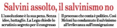 Diffido francamente di quella bomba di carta che mi sembra, francamente, il “duello sul Viminale” gridato da Repubblica enfatizzando, a dir poco, il rimpianto, le aspirazioni e quant’altro attribuiti a Matteo Salvini dopo l’assoluzione piena ottenuta nel processo di primo grado per gli sbarchi di migranti clandestini ritardati nel 2019 dall’allora ministro dell’Interno. Che perciò vorrebbe tornare ad esserlo se ne avesse la pur improbabile occasione.