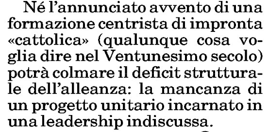 Se n’è parlato anche nella conferenza stampa, dove la premier si è mostrata sicura del fatto suo, convinta delle scelte compiute e fiduciosa della sintonia che ha saputo creare con l’elettorato. Che sarà paradossalmente lontano dall’alternativa ricercata al centrodestra, anche con la rianimazione bocca a bocca del fantomatico centro, di stampo cattolico o laico che sia, quanto più largo riuscirà ad essere il cosiddetto campo degli avversari della premier.