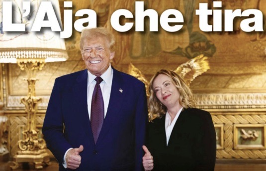 L’asse critico Trump-Meloni verso la Corte penale internazionale è stato tradotto in una Italia che “tradisce l‘Europa” dalla Repubblica, in una “sfida all’Aia” dal Messaggero, in una “Italia fuori dall’Europa?” dall’Unità di Piero Sansonetti. Arguto e canzonatorio, come al solito. il titolo del manifesto –“L’Aja che tira”- su una foto d’archivio di Trump e Meloni compiaciuti l’uno dell’altra.