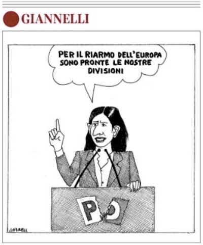 Bellissima, più efficace di un editoriale, la vignetta del Corriere della Sera nella quale Emilio Giannelli fa dire alla segretaria del Pd Elly Schlein che “per il riarmo dell’Europa sono pronte le nostre divisioni”. Cioè quegli undici voti del Pd chiesti e ottenuti dalla stessa Schlein con la formula dell’astensione contro il piano di riarmo proposto dalla Commissione Europea e quei dieci invece favorevoli che hanno messo in evidenza due spaccature: quella interna al Nazareno, dove è destinata a crescere la tensione, e quella interna al gruppo del partito socialista europeo. Dove il Pd ha sulla carta la delegazione più numerosa. Una figuraccia che deve avere inorgoglito la presidente della Commissione Ursula von der Leyen dopo avere detto fuori dall’aula di Strasburgo ad un Giuseppe Conte che, giunto apposta dall’Italia, si vantava di capeggiare la sinistra contro di lei: “Io sono forte”. O più forte.
