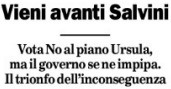 Lapidario e sarcastico è stato Il Foglio sul “trionfo dell’inconseguenza” nella maggioranza di centrodestra di fronte a Salvini che “vota no”, o fa vorare noi dai suoi, “al piano Ursula ma il governo ne impipa”.