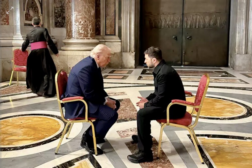 Quella foto di Trump e Zelensky seduti uno di fronte all’altro a San Pietro dopo lo scontro clamoroso avuto alla Casa Bianca in diretta televisiva, e già ridimensionato da successive interlocuzioni a distanza fra i due, riduce obiettivamente gli spazi di manovra di Putin. Che può certamente continuare a boicottare la pace, come anche Trump ha cominciato a rimproverargli dopo averne disinvoltamente rovesciato il ruolo da aggressore ad aggredito. Ma gli sarà a questo punto più difficile prolungare una guerra durata già troppo rispetto ai cinque o quindici giorni previsti della cosiddetta “operazione speciale”, cominciata più di tre anni fa con l’obbiettivo di ammazzare o mettere in fuga Zelensky e di prendersi tutta l’Ucraina per “denazificarla”, come annunciò l’uomo del Cremlino.