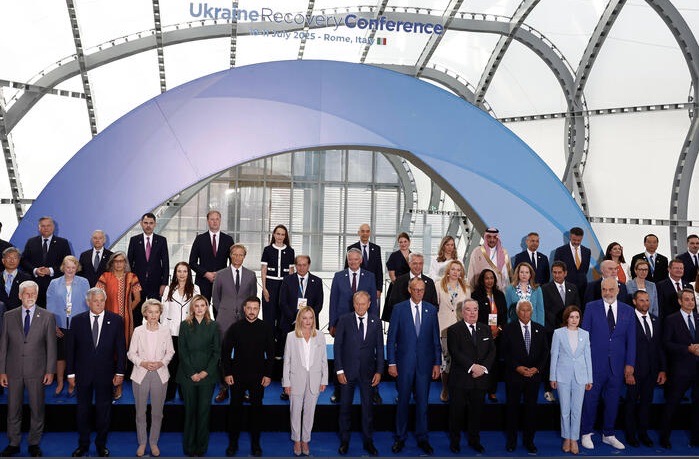 Tanto è consolante l’immagine del governo italiano in quella foto emblematica della Conferenza internazionale a Roma per la ricostruzione dell’Ucraina, dove Putin tuttavia continua a ordinare distruzioni e morti, quanto non lo è stata nel Parlamento europeo nella pur evitata sfiducia promossa da un sovranista romeno contro la presidente della Commissione dell’Unione, Ursula von der Leyen: la terza a sinistra in prima fila nella foto dell’evento romano.