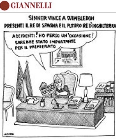Scherzi a parte, mi sembra che la politica e dintorni mediatici azzuffandosi anche sulle assenze italiani eccellenti, diciamo così, a Wimbledon abbiano perso anch’essi una buona occasione di misura, come Giannelli ha praticamente accusato la Meloni.