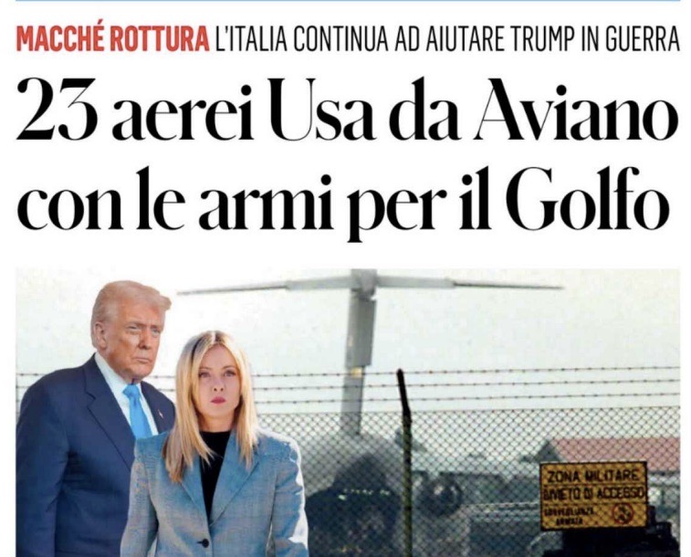 La prova della sceneggiata, di quel “macchè rottura” è stata trovata o indicata nell’intenso traffico militare nella base americana di Aviano, al Nord, dove da un bel po’ di settimane transitano armi e mezzi utili alla guerra all’Iran, impediti invece di recente dal governo italiano nella base di Sigonella, al Sud.